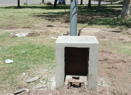 – Montaje de Columnas de Iluminación en Espacios Verdes.
